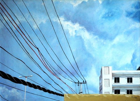 City scapes wires-1 wires -2 wires -3 white building wired yellowbuildings Blue light night street Redbus Auto waiting, Sarry hanging, Two Autos, Red building, Night view, NightLight,